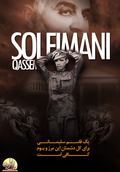 A recent article in WND points to a poster that came out recently. The article is by Iran watcher and expert Reza Kahlili. He points to a website run by the Quds Force (its in the Farsi language and if it looks like Arabic thats because Farsi is written in Arabic letters, per the orders of the crusher, Islam) who of course idolize their commander, Maj. Gen. Qasem Soleimani. The poster that came out is way down on their site, so you’ll have to scroll down, press buttons at the bottom that become available, etc. But here is the poster.