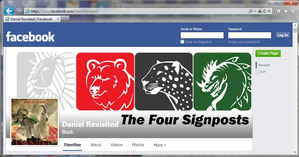 I am pleased to announce that another reader, Bill, started a Facebook page for Daniel Revisited. I will figure how to better tie this site to that Facebook page, but for now it will be added to the links section. The page is basically a mirror site of this one, and so now folks can spread the Signpost message with their friends who use Facebook. Thanks, Bill.