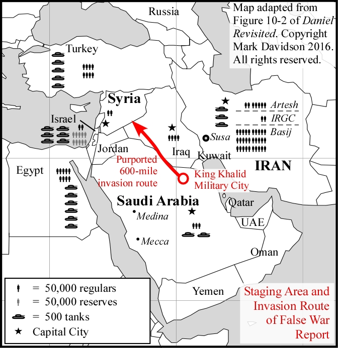 Third – Yes, northern Saudi Arabia is a scant 60 miles thru Jordan to Syria but the author ignores one tiny little detail: the exercise is way over by Kuwait. It’s analogous to saying I’m going to invade Vancouver, Canada from Seattle because its only 100 miles away, while forgetting your troops are in Bismarck, North Dakota.