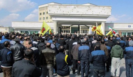 HEPCO workers protest due to unpaid wages of four to six months, in September 2017, at Arak, Iran.