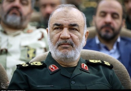 IRGC commander MG Salami. Note the red badge of the kings of the Persian ram.