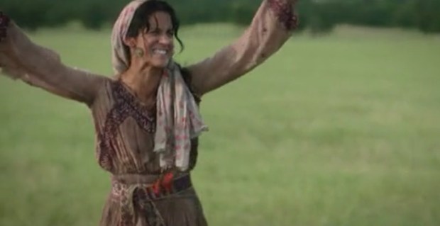 The Samaritan woman declares she is going to tell everyone Jesus is the Christ! Screen grab from Episode 8, I Am He.