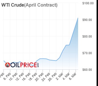 If oil is cut a total of 20-25 percent, we could be looking at a jump in the oil price of 6-8 times that of the price prior to this war. That would mean, the price per barrel of WTI could be about $400 to $500 per barrel, wrecking the world economy. It would go up this much because we saw a doubling in price twice in 1973 and 1979 when production was cut only 6 percent each time.
