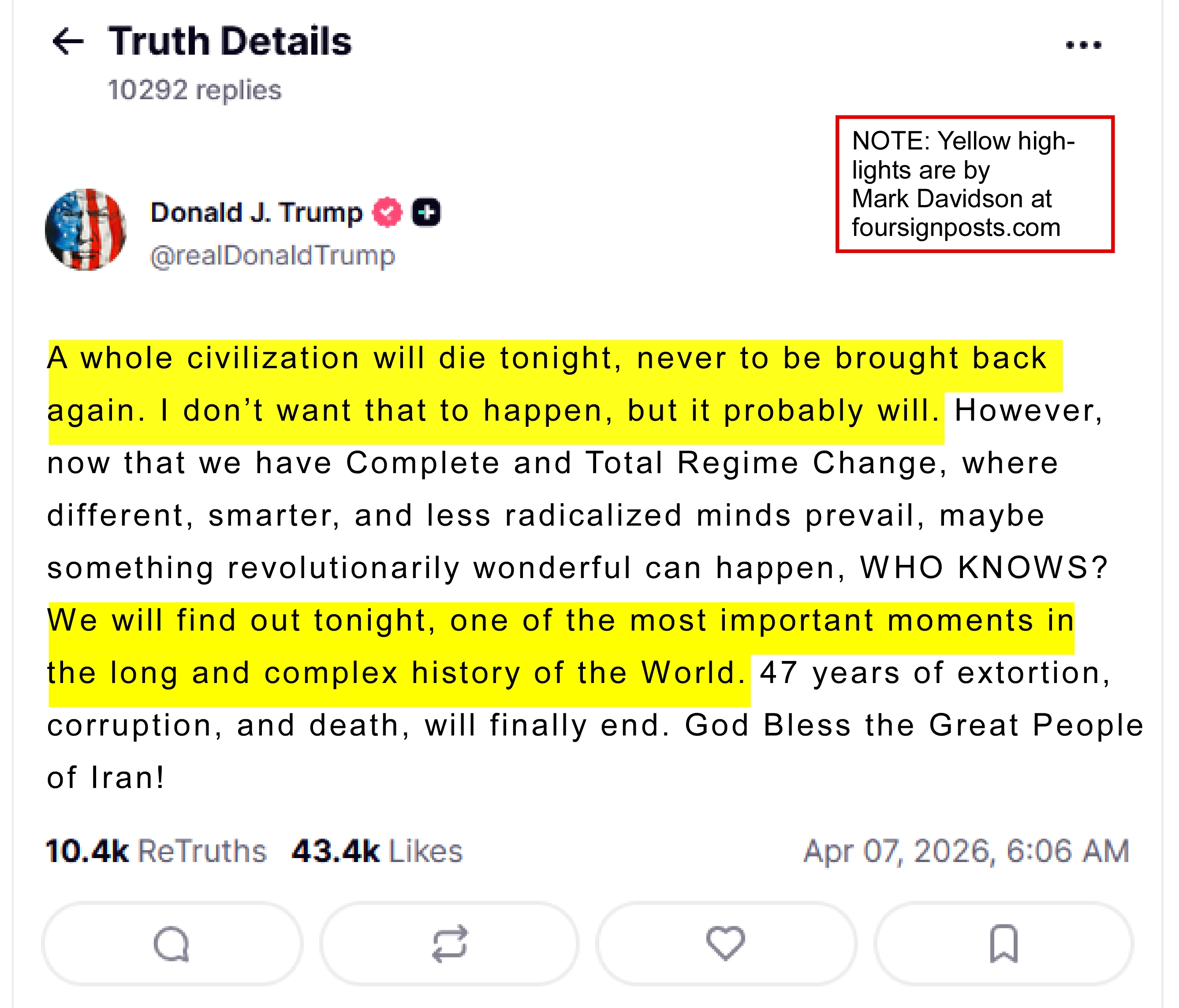 Interestingly, what I’ve highlighted in yellow of Trump’s message might very well be prophecy out of Trump’s own mouth, but as applying to Western civilization, not Persia.